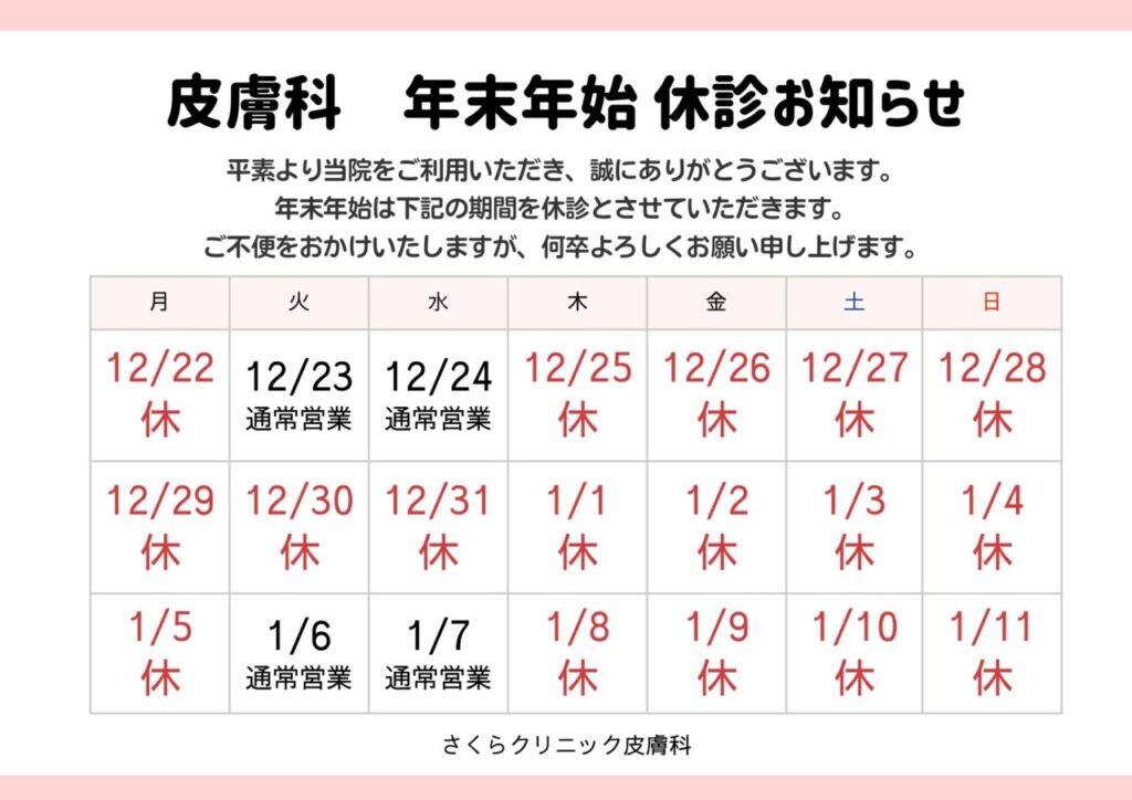 年末年始休診 皮膚科