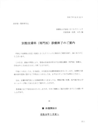 別館皮膚科(専門医)診療終了のご案内(PDF)